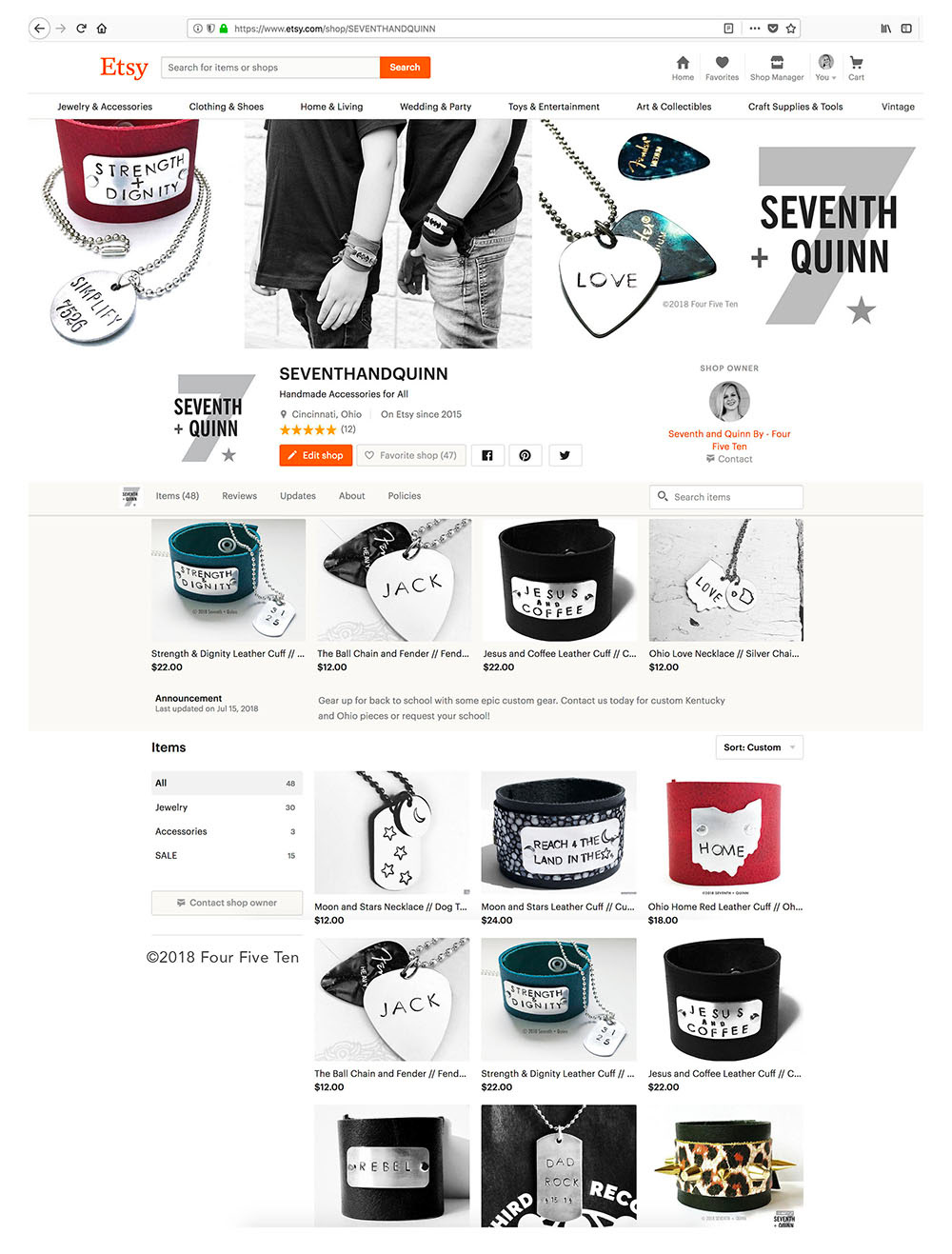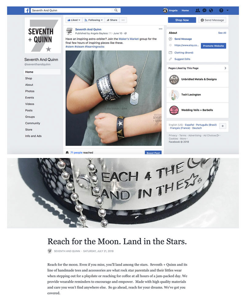 Etsy lacks the audience insights that social media platforms offer but promotes organic shopping to consumers that may not have heard of us otherwise. Seventh + Quinn commonly adds listings and updates, re-vamps keywords, and updates shop announcements to bolster Etsy consumer search efforts. We pair our social media posts with those mirroring Etsy shop updates for an integrated approach.