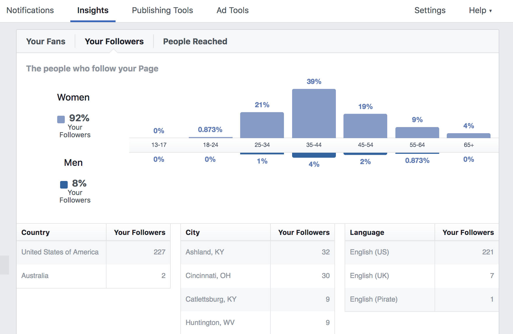 Both Facebook and Pinterest are areas of opportunity for the Seventh + Quinn line. Facebook has yet to catch fire for us, and the brand page attracts a different type of follower. Women still dominate the brand's audience; however, they are slightly older (35-44) and have children who are slightly older as well. Even when posting the same content from Instagram, we speak with a somewhat more refined brand voice on Facebook. As a brand, we'd love to see purchasing growth within this segment, as the accessory line was initially designed with them in mind.