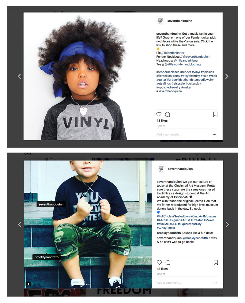 We built our brand from the bottom up using the Instagram platform and the aid of a growing, underground culture called, “brand reps.” Brand representatives partnered with our line early on in exchange for discounted and/or free product. They provided some of the fantastic, diverse, edgy photos that you see of kids and adults wearing our product. They also promoted our sales and product releases on their own pages and provided input on future offerings. It was crowdsourcing at its finest. Without the help of our original rep team, the line would not be where it is today. Seventh and Quinn now utilizes reps in the form of un-contracted collaborators without the need for a formal team.